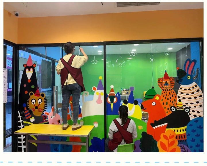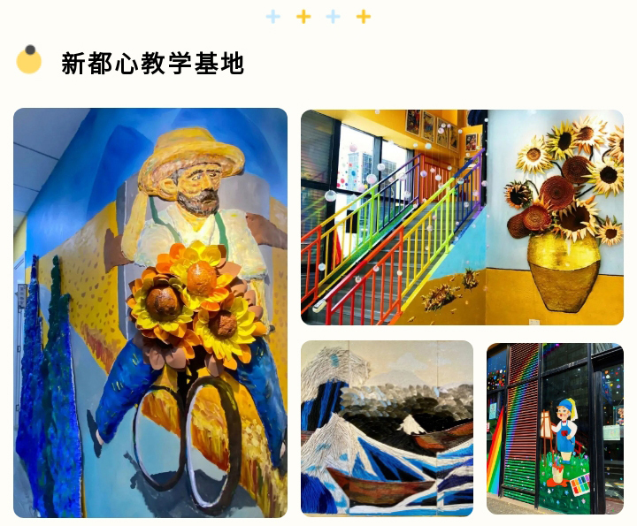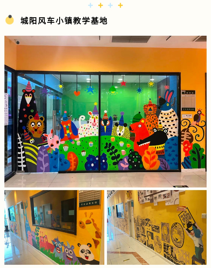 主題從名家名畫(huà)、自然動(dòng)物、風(fēng)土人文到學(xué)員們喜歡的動(dòng)漫人物、故事繪本,涉獵范圍廣,開(kāi)闊學(xué)員的眼界。而形式上也是豐富多彩,除了墻繪內(nèi)容,結(jié)合多種新型材料,增加了更多立體、動(dòng)感的設(shè)計(jì)。