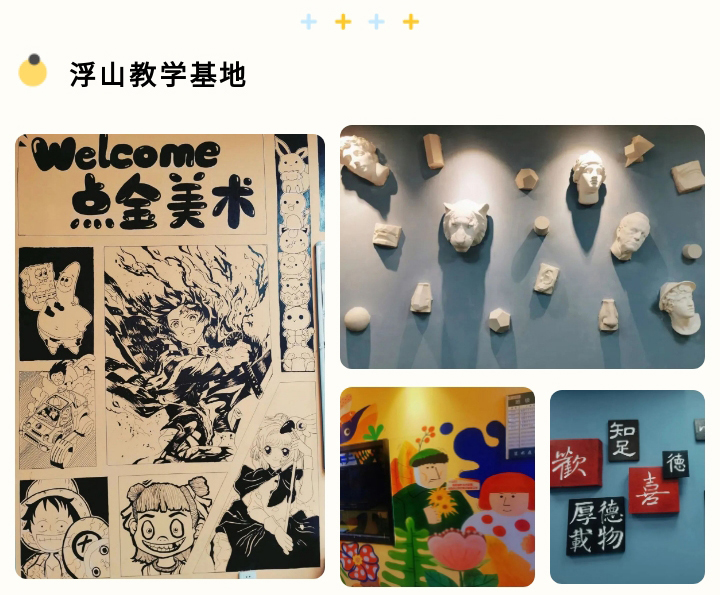 藝術(shù)點(diǎn)亮生活,讓孩子們?nèi)姘l(fā)展素質(zhì)美育,從視覺(jué)、觸覺(jué),去感知藝術(shù)的魅力,點(diǎn)金美術(shù)從來(lái)不是說(shuō)說(shuō)而已。小學(xué)員們,快到你所在的校區(qū)去觀(guān)賞新的環(huán)境吧,老師們期待你的到來(lái)~