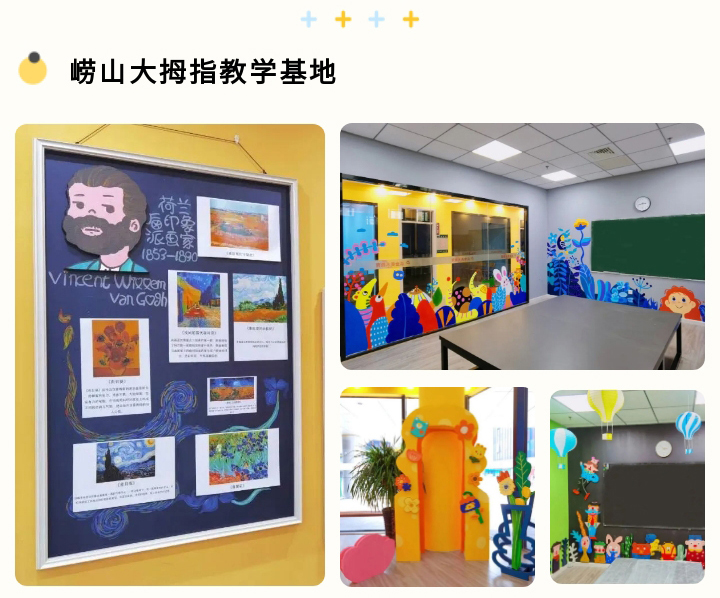 嶗山大拇指校區(qū)整體色調(diào)采用高飽和度的顏色,在幾個(gè)重要節(jié)點(diǎn)設(shè)置打卡拍照區(qū)、名人畫(huà)家區(qū)、藝術(shù)作品展示區(qū)、藝術(shù)角等,提高校區(qū)藝術(shù)氛圍,使來(lái)上課的老學(xué)員擁有一個(gè)更具藝術(shù)氛圍的學(xué)習(xí)環(huán)境。