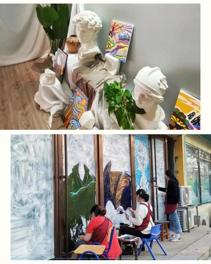 星光大道校區(qū)更新校區(qū)門(mén)口墻面內(nèi)容,校區(qū)內(nèi)部走廊底部增加趣味彩繪,提高藝術(shù)氛圍感。校區(qū)玻璃部分增加美術(shù)史內(nèi)容,豐富學(xué)員們繪畫(huà)知識(shí)。