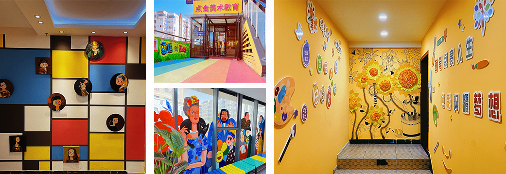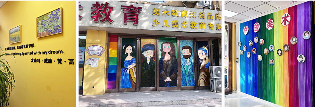點(diǎn)金美術(shù)將時(shí)刻將藝術(shù)與教育特色相結(jié)合,從教學(xué)需求出發(fā),使環(huán)境中的點(diǎn)點(diǎn)滴滴都蘊(yùn)藏著文化內(nèi)涵,用藝術(shù)點(diǎn)亮萬(wàn)家學(xué)子生活!
