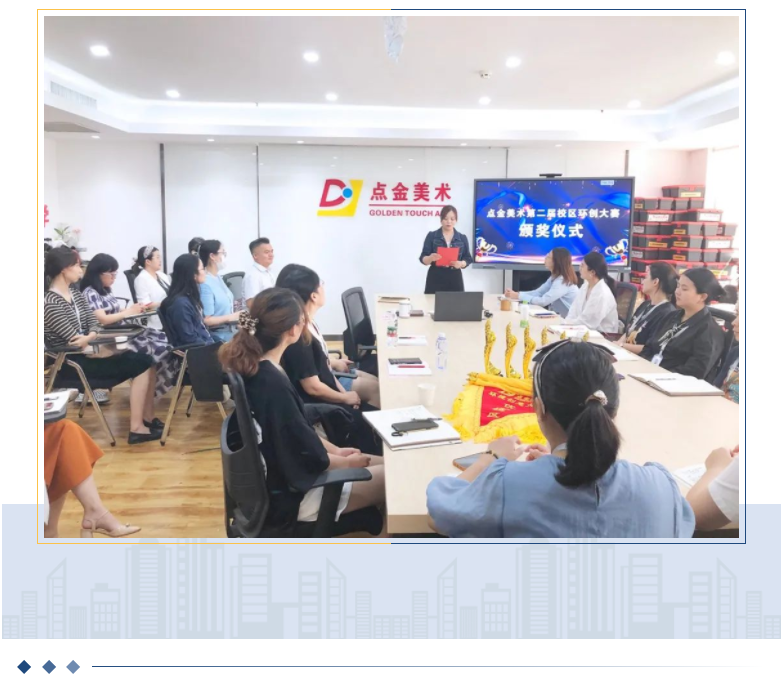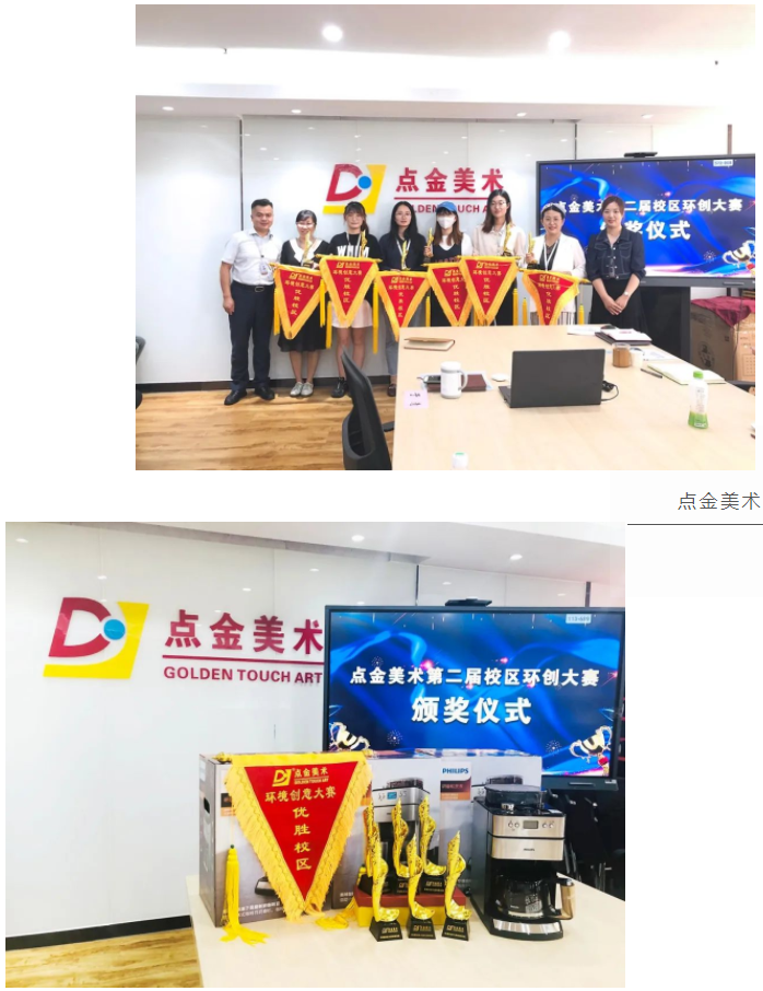 9月1日上午,點(diǎn)金美術(shù)第二屆校區(qū)環(huán)創(chuàng)大賽頒獎(jiǎng)儀式,在點(diǎn)金美術(shù)辦公總部圓滿舉行。