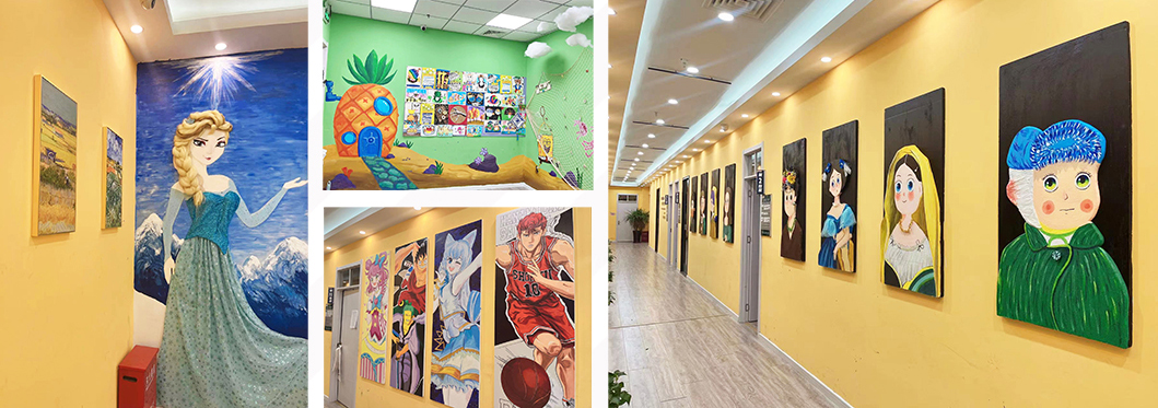 環(huán)創(chuàng),作為學(xué)員們走進(jìn)教學(xué)基地第一印象,對(duì)學(xué)員的有著啟發(fā)、教育的作用,點(diǎn)金美術(shù)定期對(duì)各校區(qū)進(jìn)行環(huán)創(chuàng)的更新,給學(xué)員們不同的藝術(shù)感官體驗(yàn),在這種良好的氛圍中激發(fā)學(xué)員們的創(chuàng)作欲,并提高他們的審美能力,用環(huán)境育人。