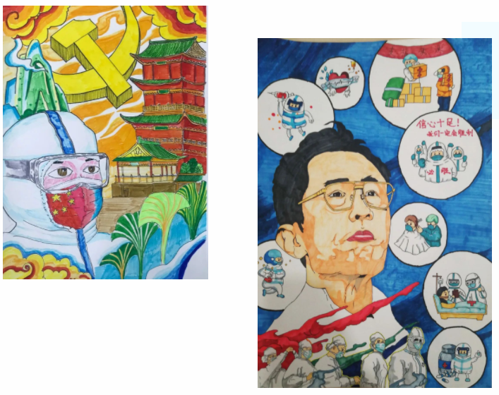 教研團隊也準備了多幅關于防疫的主題畫,供學員們學習,致敬防疫工作中的城市英雄。