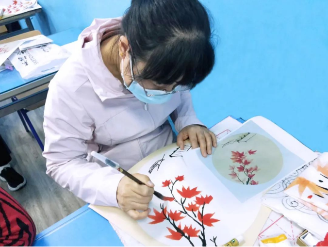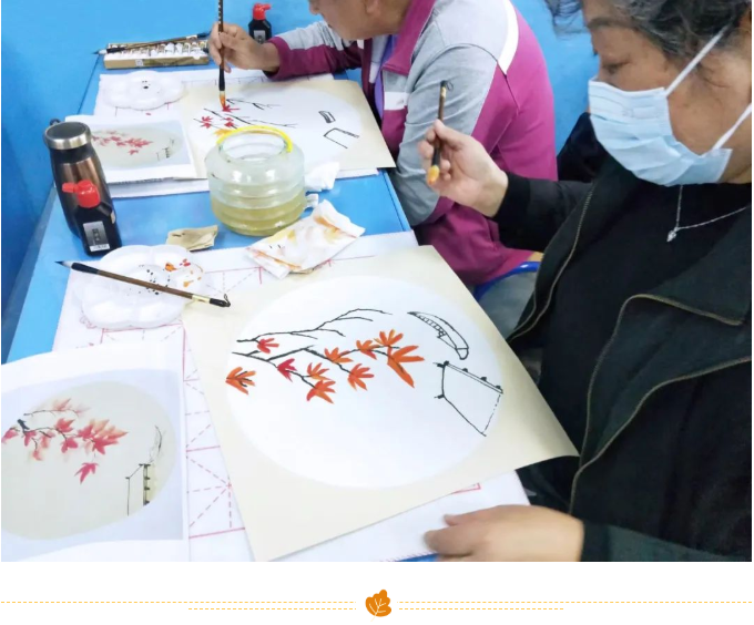 面對0基礎的“大學員”,于洋老師同樣極富耐心。豐富多姿的課程導入,深入簡出的知識點講授,營造出濃厚的學術氛圍,為居民們的呈現(xiàn)出一堂精彩紛呈的國畫課程。