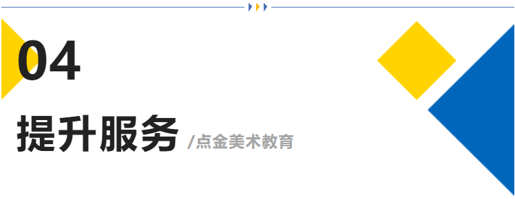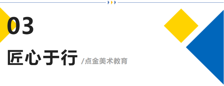 大道于品,匠心于行。教育從來不是一成不變的,需要與時俱進、開拓創(chuàng)新。點金美術時刻結合當下的社會需求、學員自身需求,對課程進行改革、更新。在更新課程內容的同時,也對教師的能力進行再提升,以保障教育教學質量。