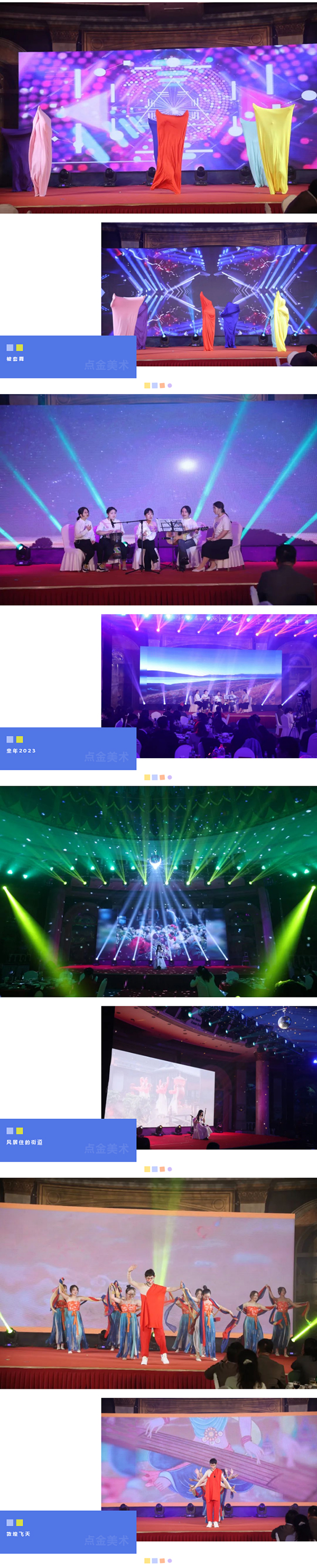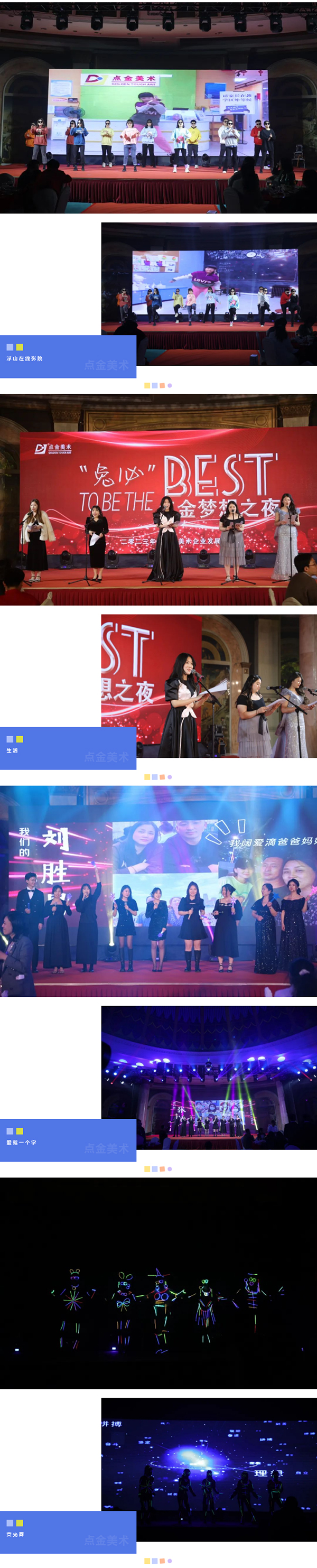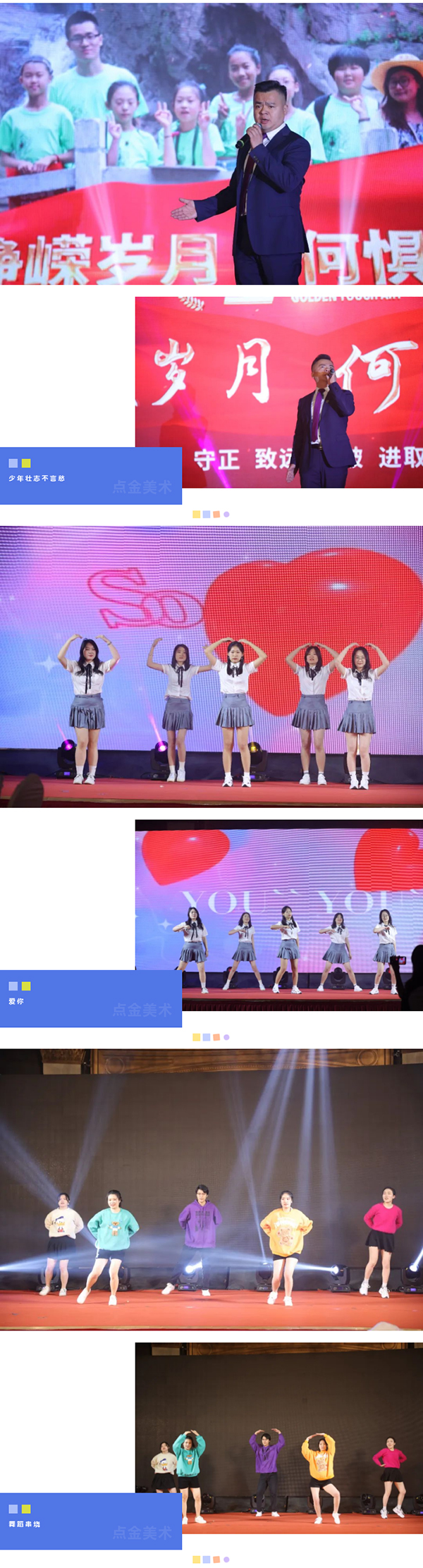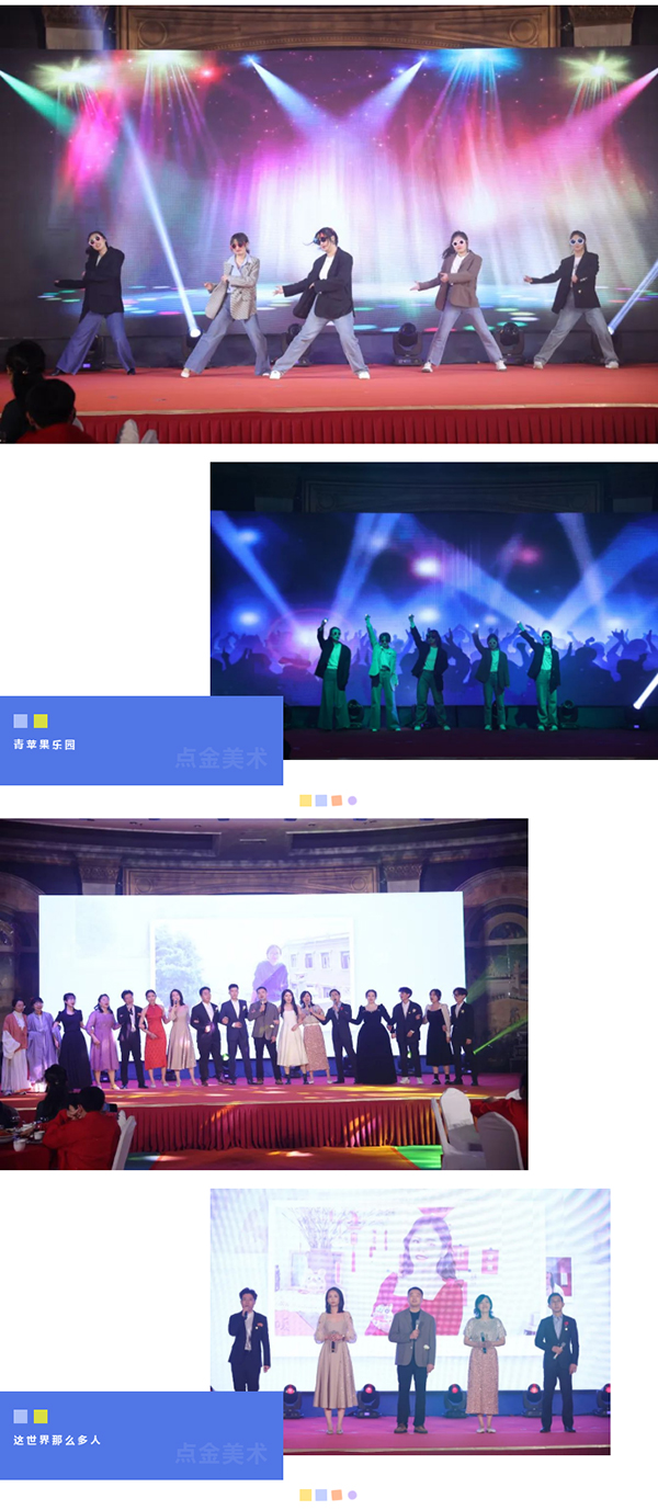 在這個(gè)充滿夢想的舞臺上,各位老師用他們最活潑、最有精氣神的一面,展示了點(diǎn)金美術(shù)蓬勃向上的青春活力,美好的時(shí)光總是短暫的,但是幸福的回憶總是美好的,愿這歡聲笑語,充滿溫情浪漫的時(shí)刻,永駐我們彼此心間。