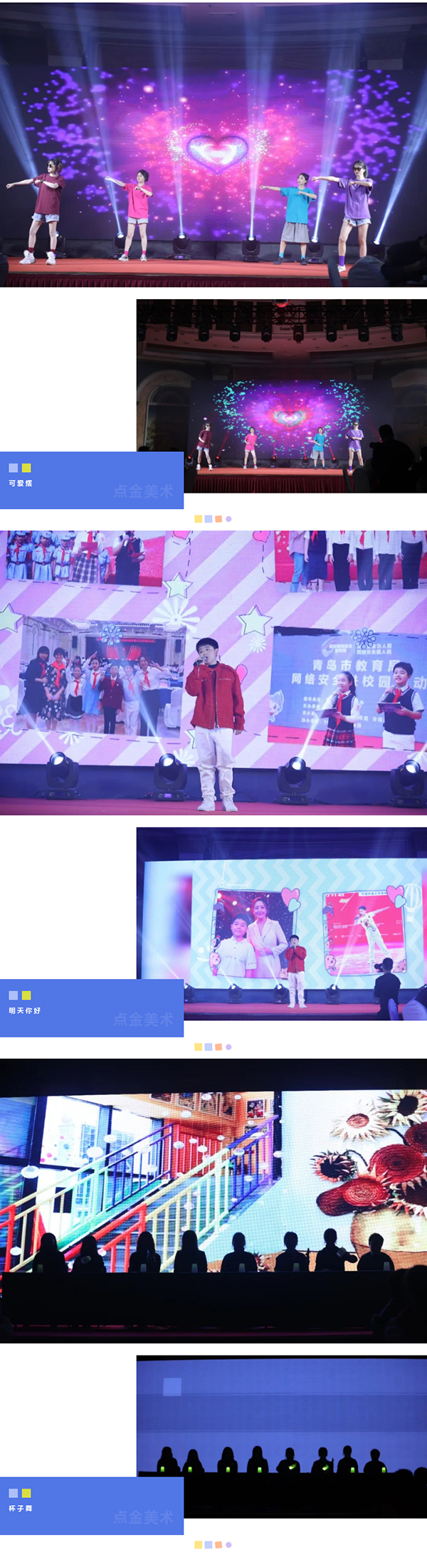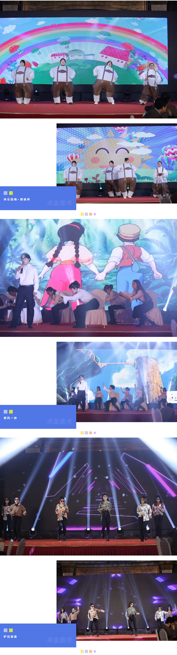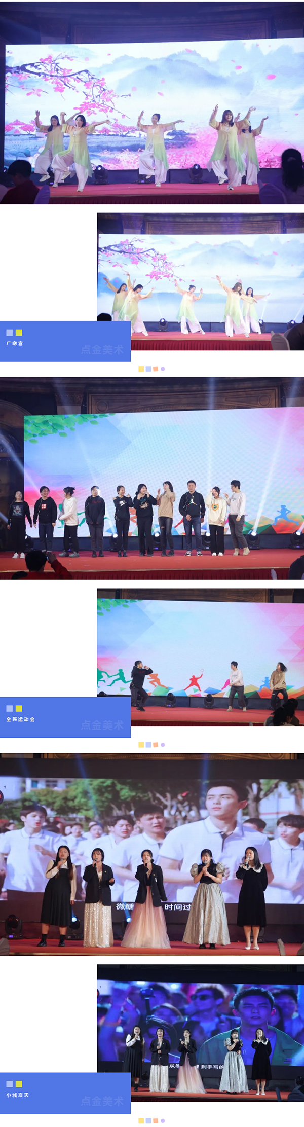 在這個(gè)充滿夢想的舞臺上,各位老師用他們最活潑、最有精氣神的一面,展示了點(diǎn)金美術(shù)蓬勃向上的青春活力,美好的時(shí)光總是短暫的,但是幸福的回憶總是美好的,愿這歡聲笑語,充滿溫情浪漫的時(shí)刻,永駐我們彼此心間。