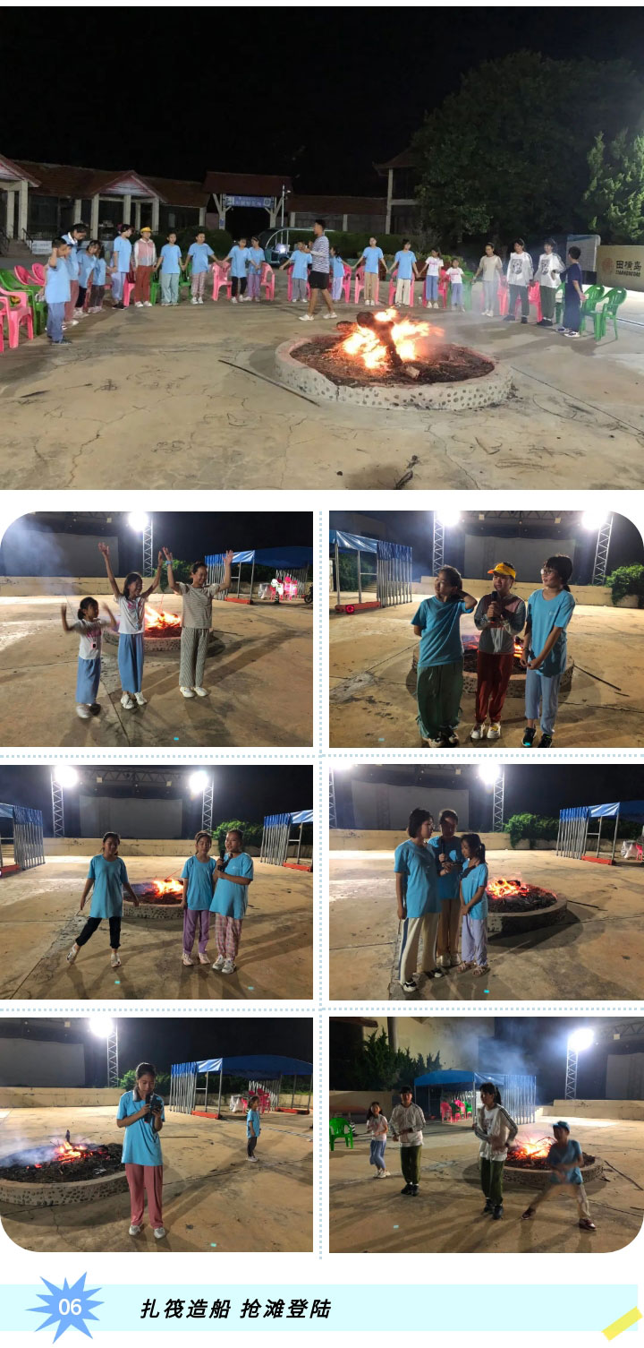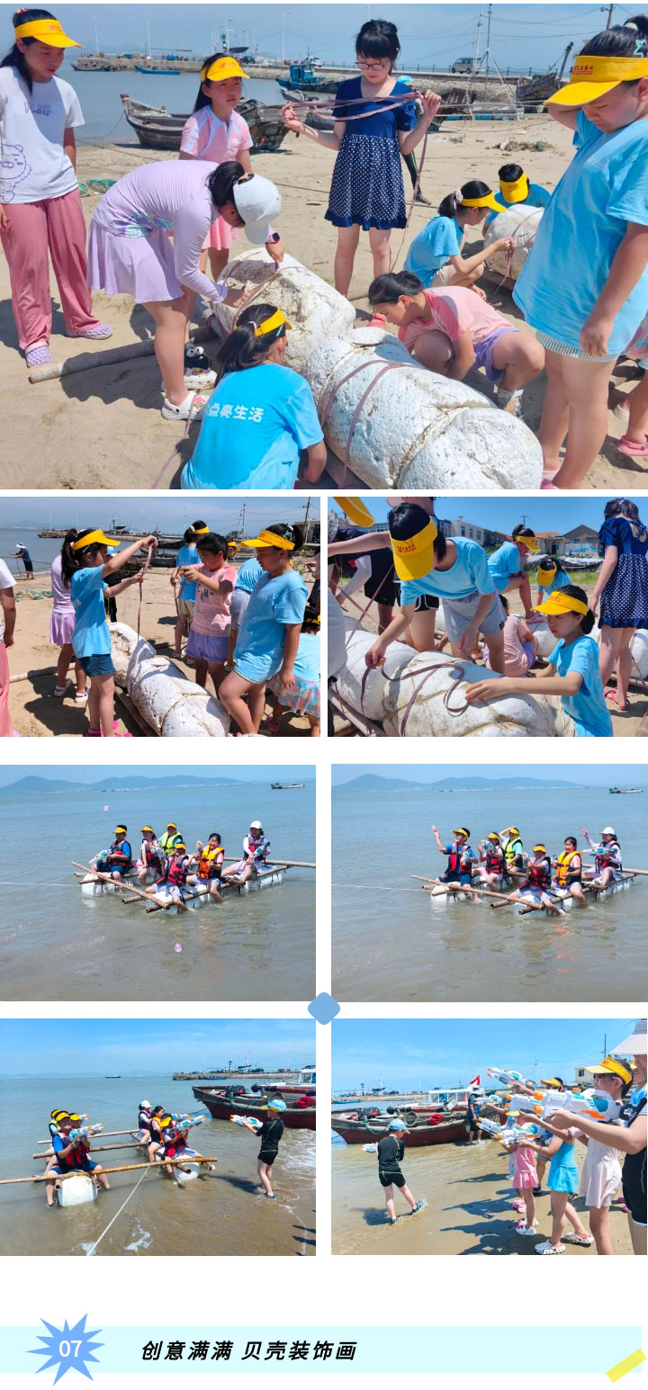 小學(xué)員們團(tuán)結(jié)一心、扎筏造船,學(xué)習(xí)扎筏的原理,鍛煉動(dòng)手能力,再進(jìn)行水槍大戰(zhàn)、搶灘登陸,好不快活。