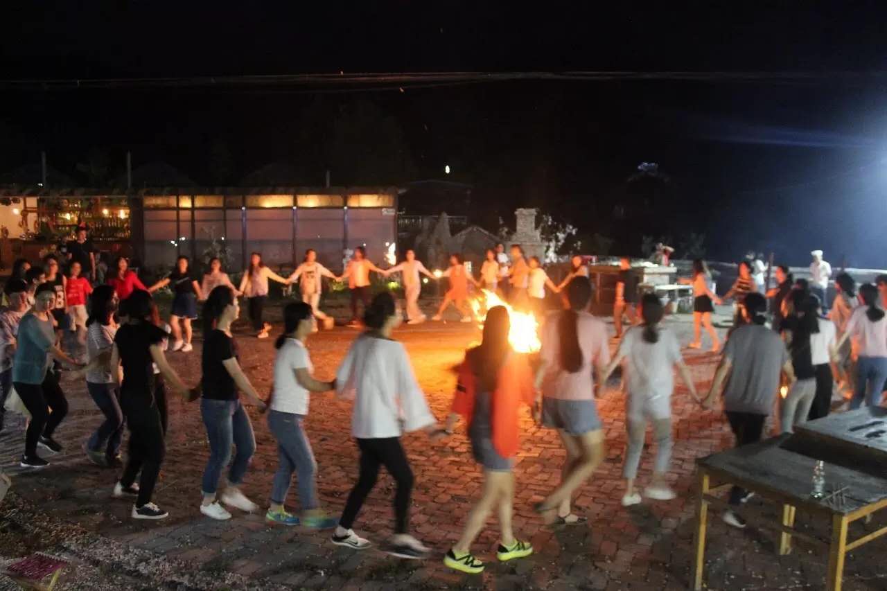 當(dāng)天活動(dòng)流程包括教職員工互動(dòng)拓展游戲、篝火晚會(huì)?;顒?dòng)以校長(zhǎng)講話拉開(kāi)帷幕;游戲拓展環(huán)節(jié)豐富多彩,包括兩人三足接力賽、搶座位、紙杯傳水、踩氣球等內(nèi)容;篝火晚會(huì)現(xiàn)場(chǎng),伴著熱情的火焰,濃濃的烤肉的香氣,老師們載歌載舞,好不熱鬧……