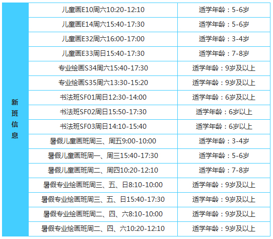 為了發(fā)現(xiàn)和培養(yǎng)在藝術(shù)方面具有特長和潛質(zhì)的學(xué)生,滿足整體教學(xué)進(jìn)程和各家長的要求,現(xiàn)應(yīng)廣大家長要求,增開新班如下,名額有限,請(qǐng)有意向的同學(xué)、家長抓緊時(shí)間報(bào)名。