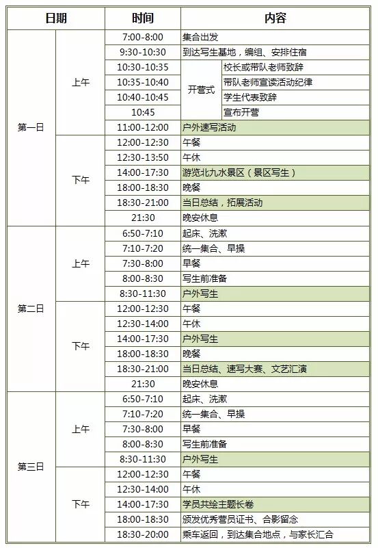 1、3天2夜全日托管式寫生夏令營,謝絕家長參與;