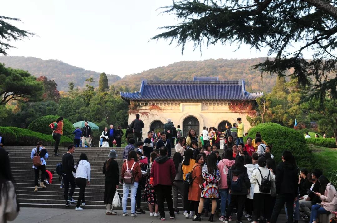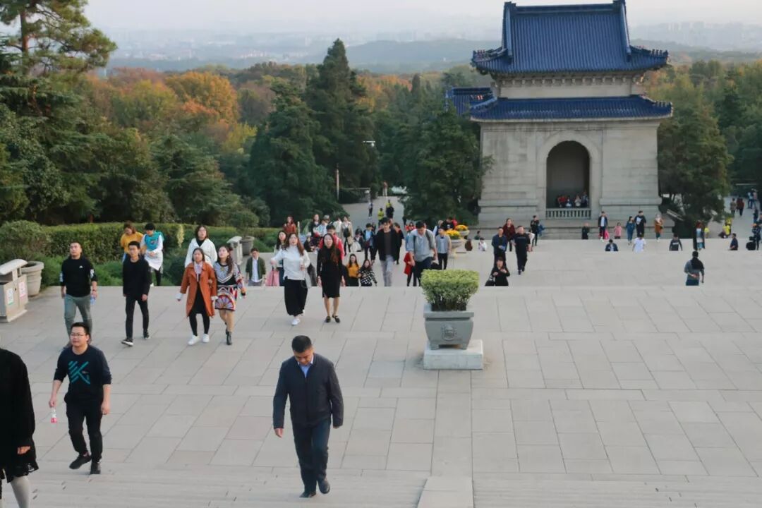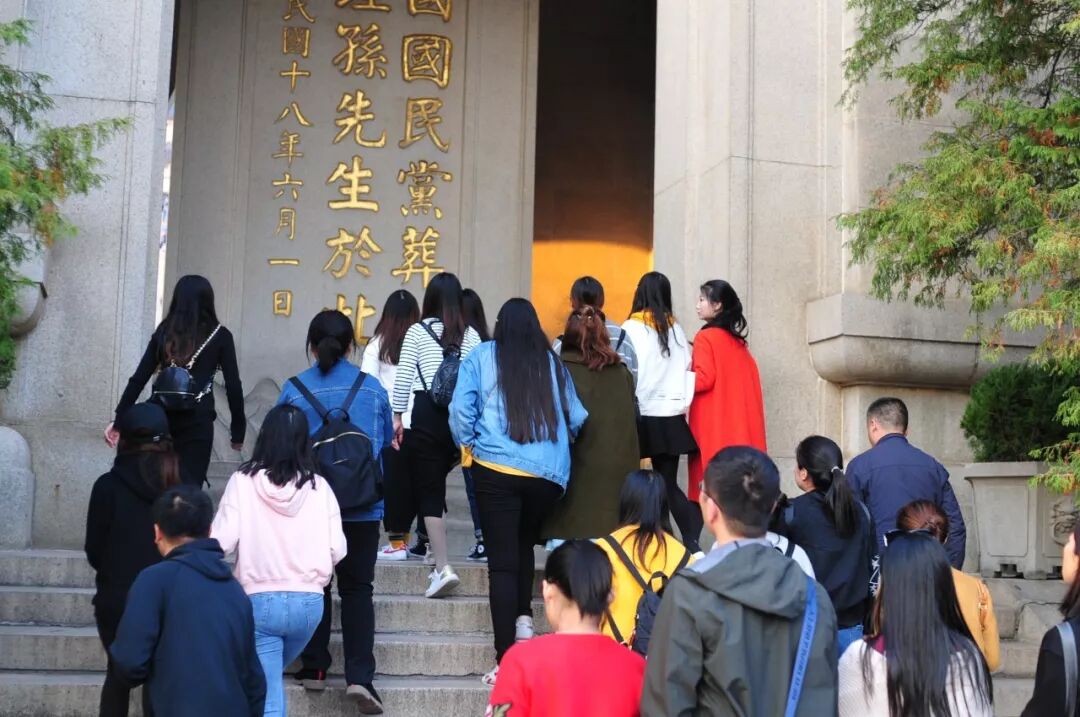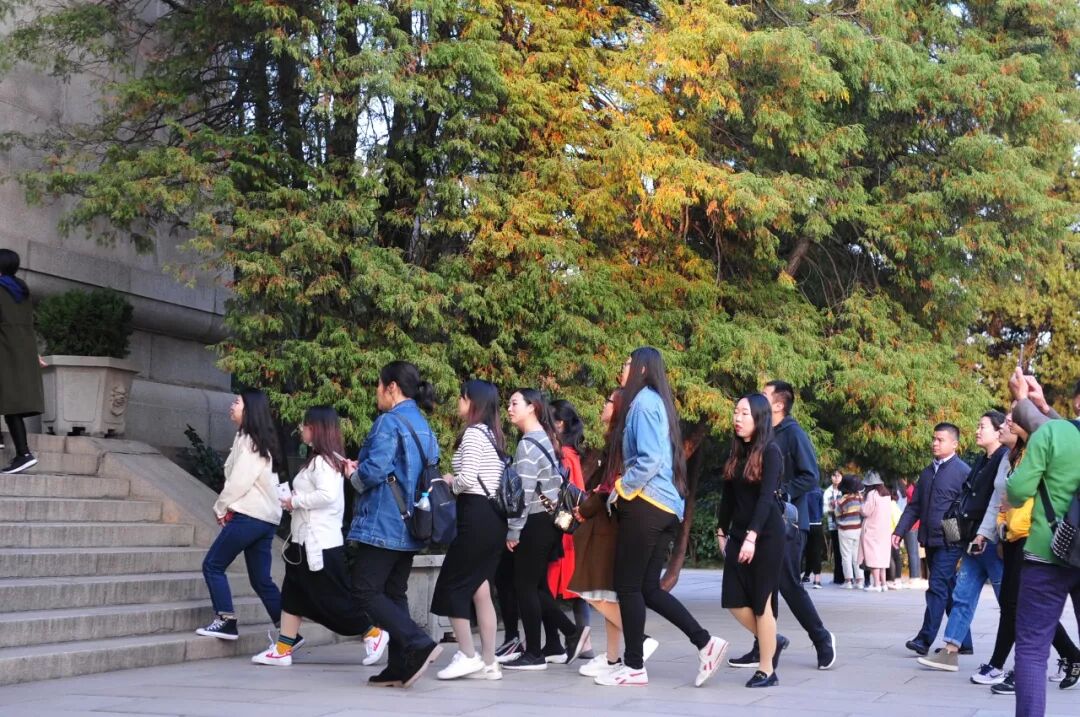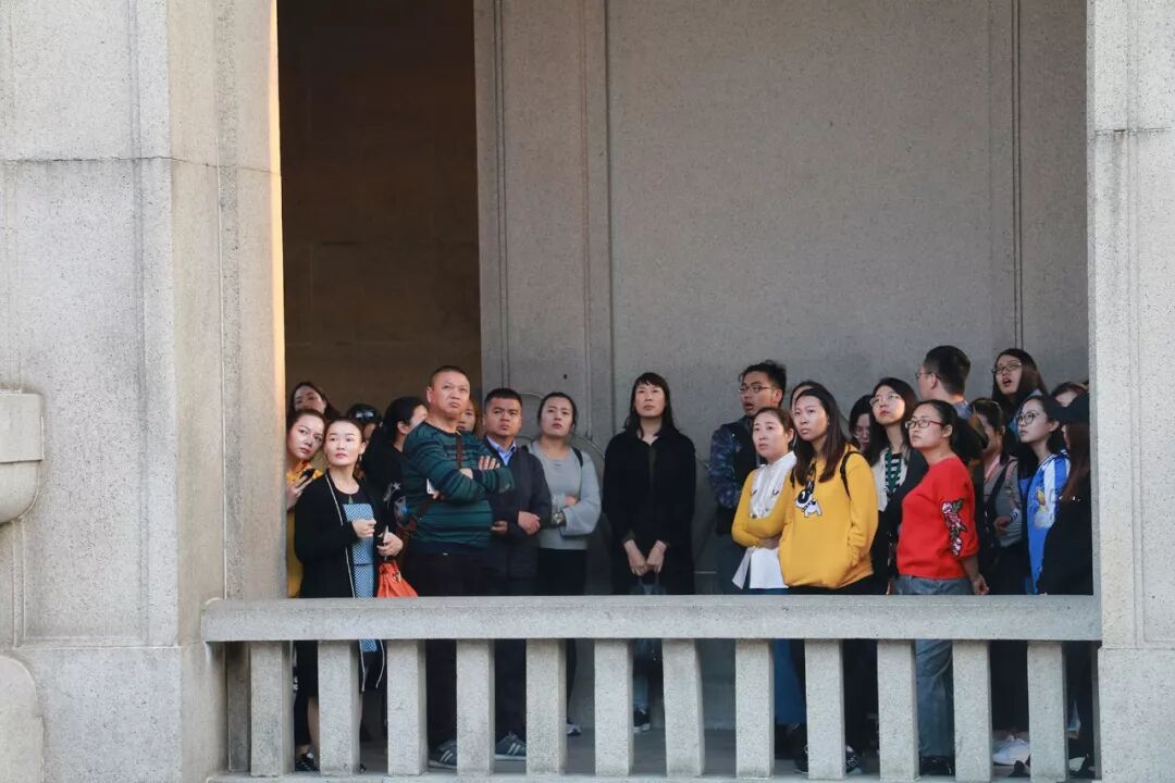 10月31日下午,點(diǎn)金美術(shù)采風(fēng)團(tuán)的老師們懷著崇敬之情來到了國父孫中山的陵寢——南京中山陵。中山陵依山而建,郁郁蔥蔥,老師們從博愛牌坊開始,一路俯身低頭于墓道上前行,微微上坡的墓道,瞻仰悼念之感頓生。