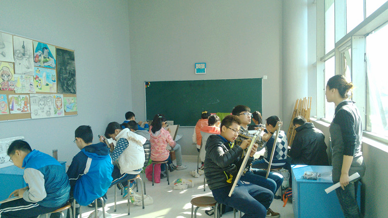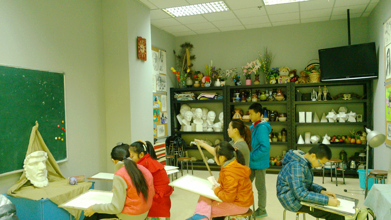 新校區(qū)教學(xué)環(huán)境更加優(yōu)美,教學(xué)設(shè)備更加先進(jìn),藝術(shù)氛圍也更加濃郁。寬敞明亮的走廊展出了同學(xué)們的優(yōu)秀作品;兒童畫教室內(nèi)愉悅的藍(lán)色,讓同學(xué)們仿佛置身于海洋的世界;素描教室中,黑色的展架、白色的石膏靜物、灰色的墻面,勾勒出了素描世界中特有的基礎(chǔ)色調(diào)。在這樣的環(huán)境中學(xué)習(xí),學(xué)員們更能充分地發(fā)揮想象力和創(chuàng)造力,定會(huì)創(chuàng)作出更多優(yōu)秀的美術(shù)作品。