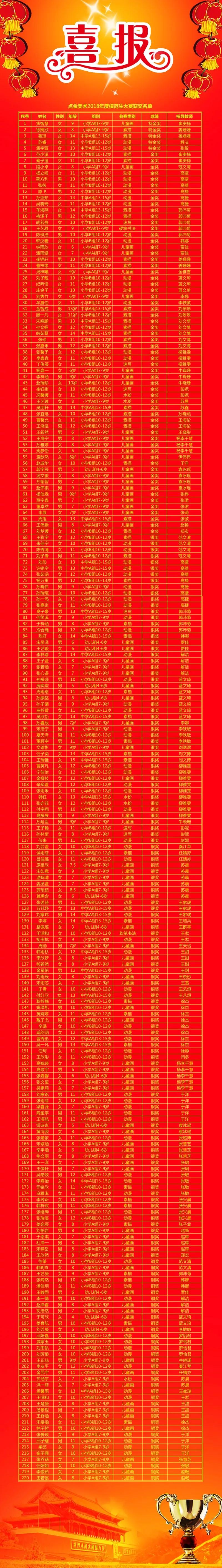 本次大賽共有220名學(xué)員報名參與,獲特金獎?wù)?人,獲金獎?wù)?2人,獲銀獎?wù)?17人,獲銅獎?wù)?6人,熱烈祝賀獲獎學(xué)員。