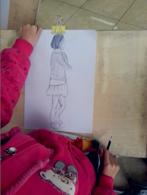 課程開始之前,同學(xué)們就準(zhǔn)備好了速寫用的畫具,接著任課教師馬老師給大家講解了人物速寫的知識點(diǎn)和注意事項(xiàng),并向同學(xué)們展示幾幅優(yōu)秀的速寫作品,把作品中線條、動態(tài)等方面的要點(diǎn)進(jìn)行了簡短分析。寫生的模特和動態(tài)安排好之后,寫生正式開始。同學(xué)們邊仔細(xì)觀察邊在畫紙上揮舞著畫筆,全身心地投入到了作畫中。時間不知不覺過去,同學(xué)們的畫紙上漸漸描繪出了生動的人物形象。最后,馬老師對同學(xué)們的作品進(jìn)行了整體點(diǎn)評,鼓勵大家課余時間多加練習(xí)速寫,這樣可以極大地提高同學(xué)們的造型能力和觀察能力,進(jìn)一步提高同學(xué)們的繪畫水平。