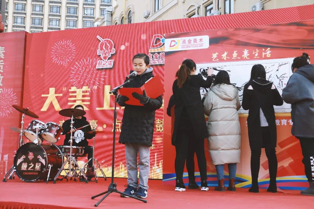 點(diǎn)金青偉鼓之星教育綜合體在三校的精心策劃與協(xié)同合作下,盛大開(kāi)啟,作為點(diǎn)金美術(shù)年度收官大作,活動(dòng)以推進(jìn)素質(zhì)教育為主線(xiàn),輔以別樣精彩的文體匯演,雖然現(xiàn)場(chǎng)寒風(fēng)凜冽,但來(lái)賓的熱情卻勝似暖陽(yáng)。無(wú)論是參演的學(xué)員代表,還是報(bào)名、咨詢(xún)的學(xué)員家長(zhǎng),不懼冬日嚴(yán)寒,積極參與其中,教育綜合體良好的口碑與優(yōu)質(zhì)的師資力量,吸引了現(xiàn)場(chǎng)近100組學(xué)員家庭的加入。