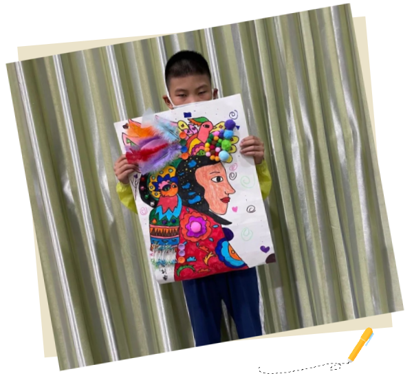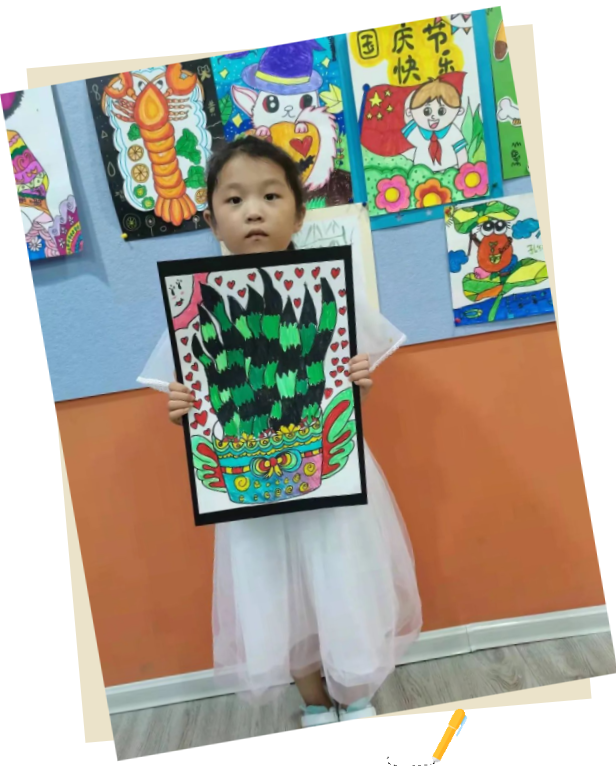 哥哥李釗睿是一個(gè)小暖男,每次完成作品以后都會(huì)提醒兩個(gè)妹妹及時(shí)整理文具,畫畫也基本不需要老師太費(fèi)心,自己都能跟著課堂進(jìn)度很好的完成。