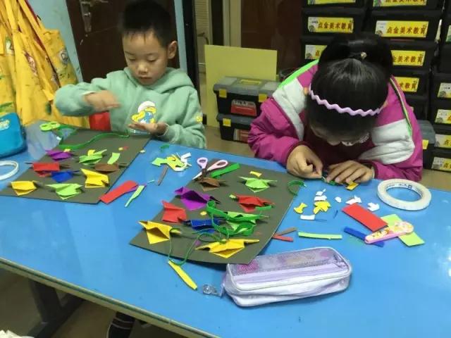 10月23日,點金美術(shù)臺東教學(xué)基地兒童畫03班和07班,兩個班共同上了一節(jié)別開生面的手工課。