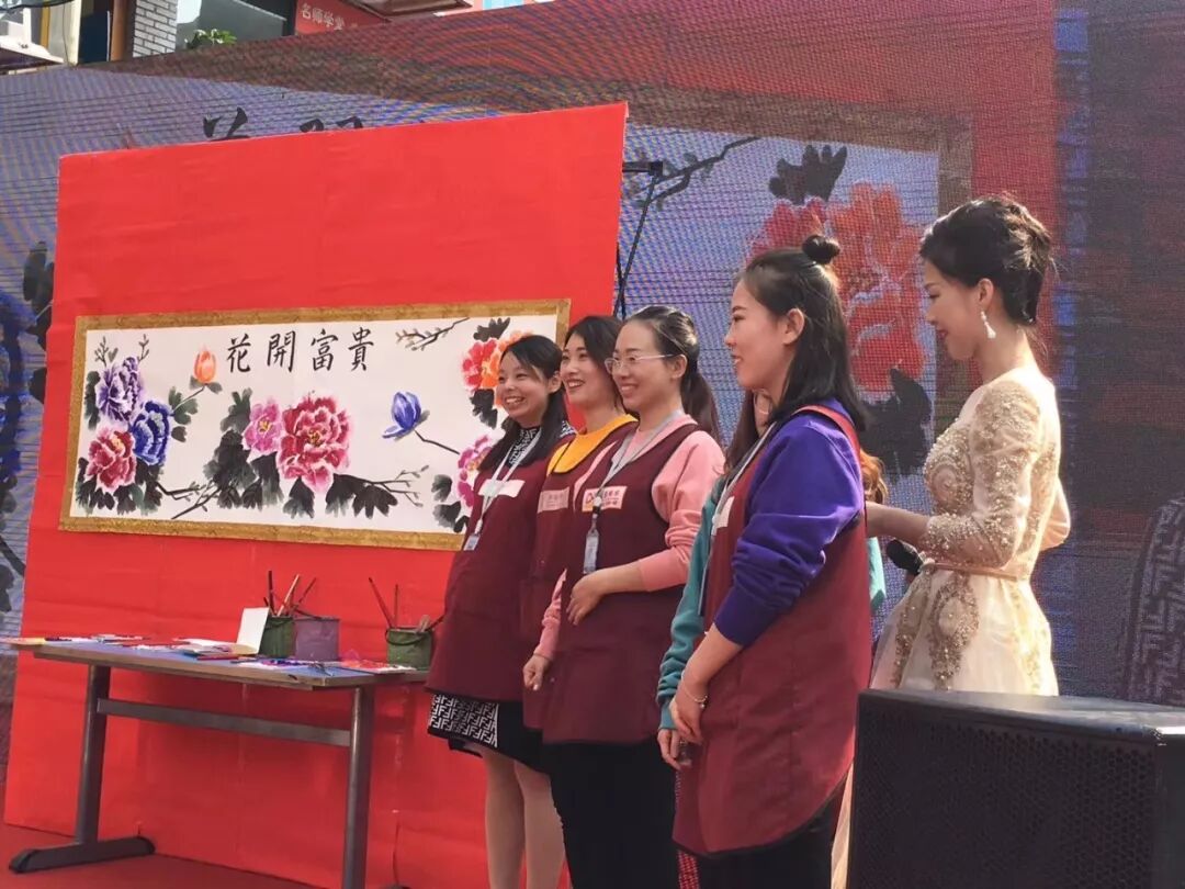 開(kāi)業(yè)現(xiàn)場(chǎng)點(diǎn)金美術(shù)臺(tái)東教學(xué)基地的老師們伴隨著清悅悠揚(yáng)的樂(lè)曲,共同完成了現(xiàn)場(chǎng)作畫(huà)《彩繪牡丹圖》,中國(guó)傳統(tǒng)文化中,牡丹雍容典雅、富貴祥和的形象代表著人們對(duì)明天的美麗憧憬和美好愿景,牡丹花也成為中華民族的優(yōu)秀品格與精神的象征。牡丹盛開(kāi)、雙喜連至,臺(tái)東教學(xué)基地于開(kāi)業(yè)現(xiàn)場(chǎng)繪就《彩繪牡丹圖》旨在希望將美好祝愿與文化象征凝練于這一幅畫(huà)作,也希望將傳統(tǒng)文化與時(shí)代精神厚植于點(diǎn)金美術(shù)的每一位學(xué)員心中。